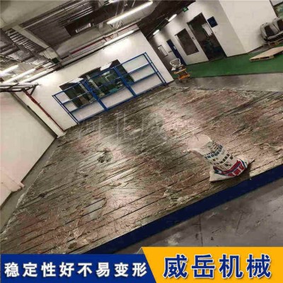 铸铁T型槽平台为了防止发生有害的变形,支承时,尽量将铸铁T型槽平台的工作面调整到水平面内。检验完毕或划线完毕后,要把工件抬下来,不得长时间放在平板上。使用完毕,要及时擦净平板的工作面,然后涂上一层防锈油。如果比较长时间不用,好涂上一层黄油,然后铺一层白纸。好用木板制作的一个专用罩,不用时,用罩子将平板罩住,严禁水滴在铸铁T型槽平台上。